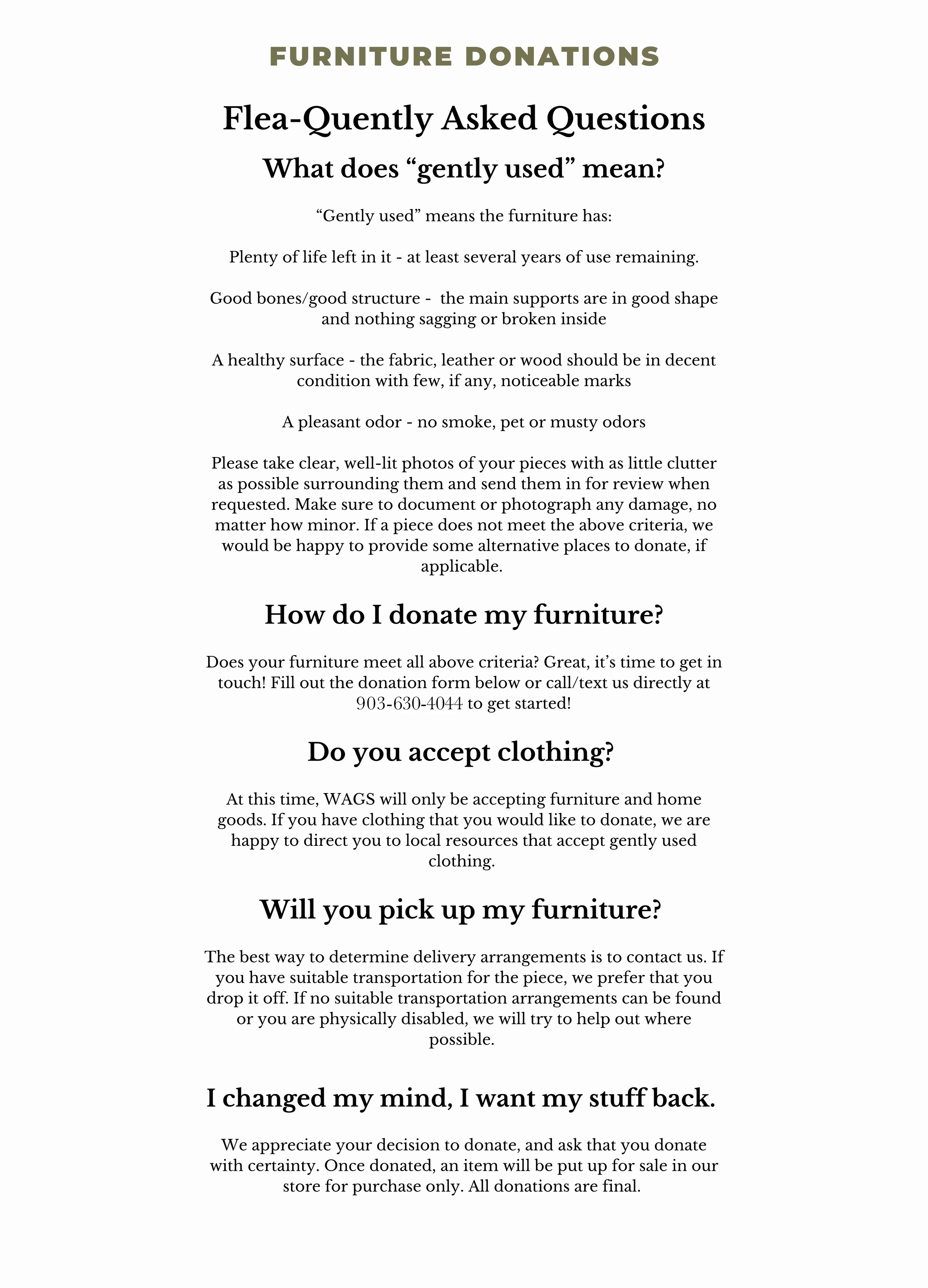 So, you don’t have any furniture to donate at the moment and you don’t need anymore for your home — You can still help! Monetary donations are a great way to show your support WAGS’ mission to help provide food and medical care for East Texas pets in need. Donate what you can, and help us improve the lives and health of pets in East Texas!